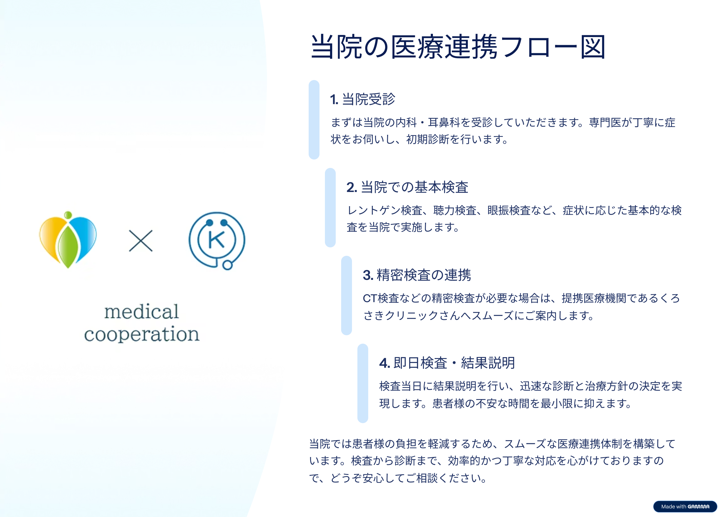 A. くろさきクリニックさんでは、院内にCT設備を完備しているため即日検査・即日結果説明を行うことが可能です。